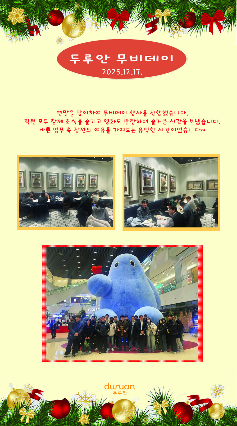 (주)두루안 '무비데이 (movie day)' 행사가 실시되었습니다.