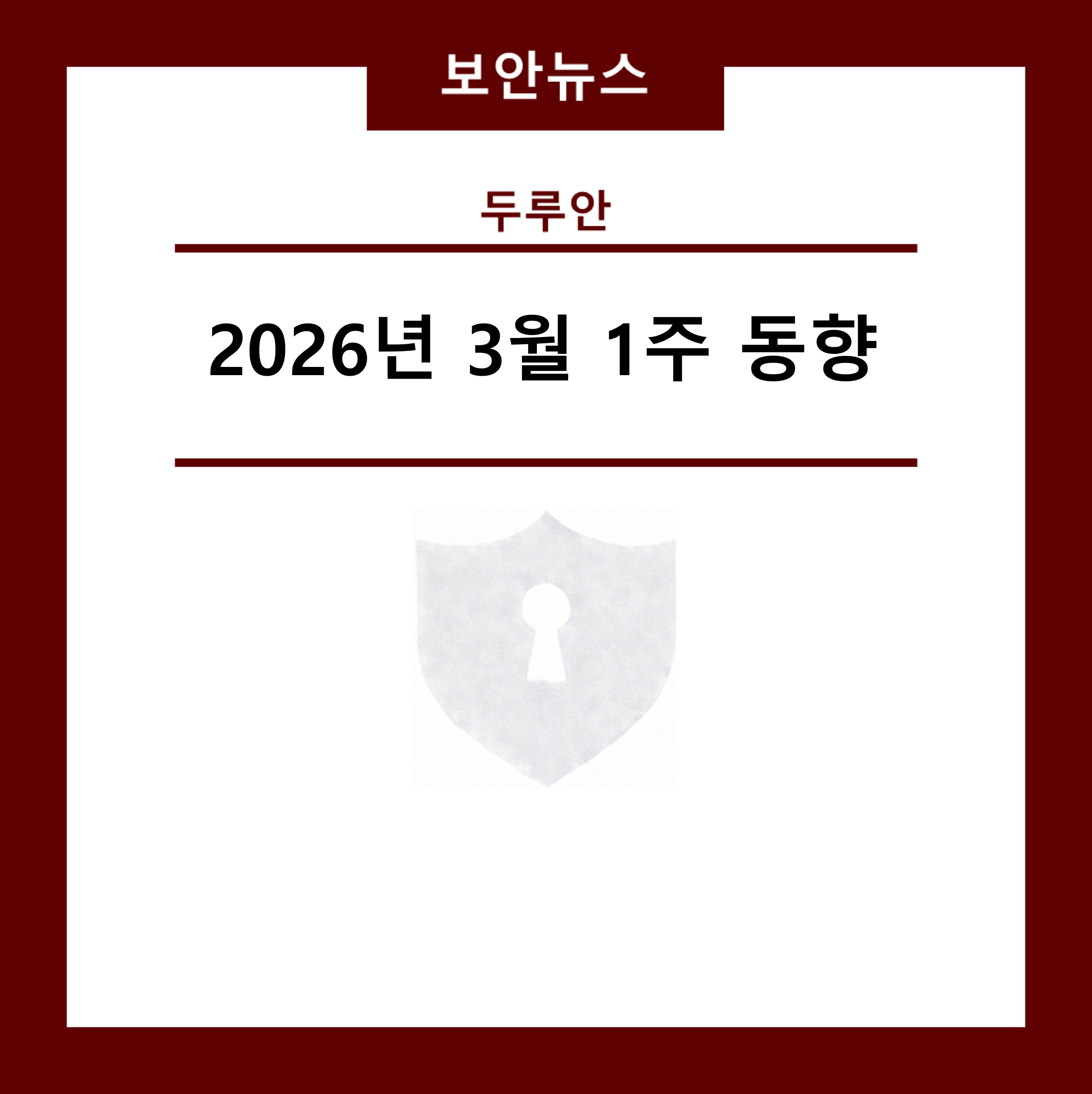 [보안뉴스] 2026년 3월 1주 동향 보도일|2026.03.09 조회수|1357